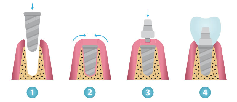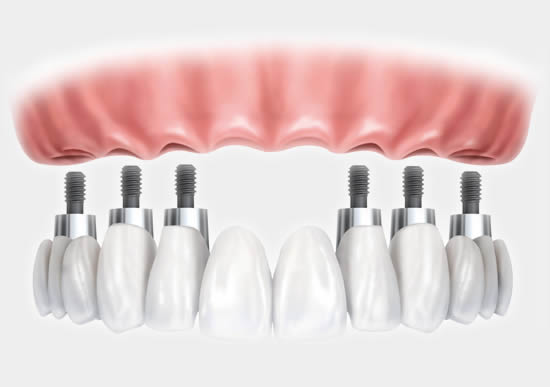 Dental implants are metal posts or frames that are surgically positioned into the jawbone beneath your gums. Once in place, they allow your dentist to mount replacement teeth onto them.